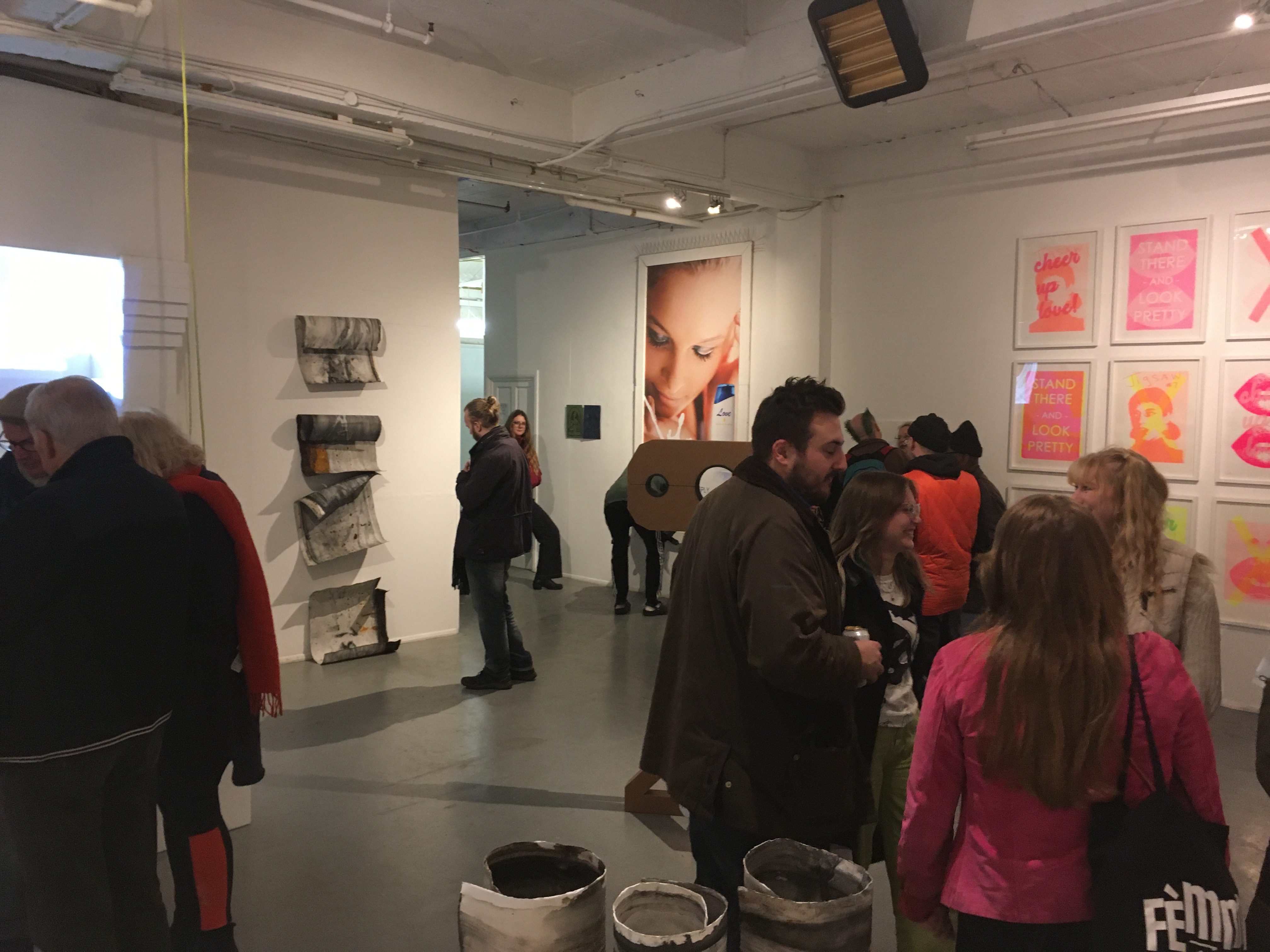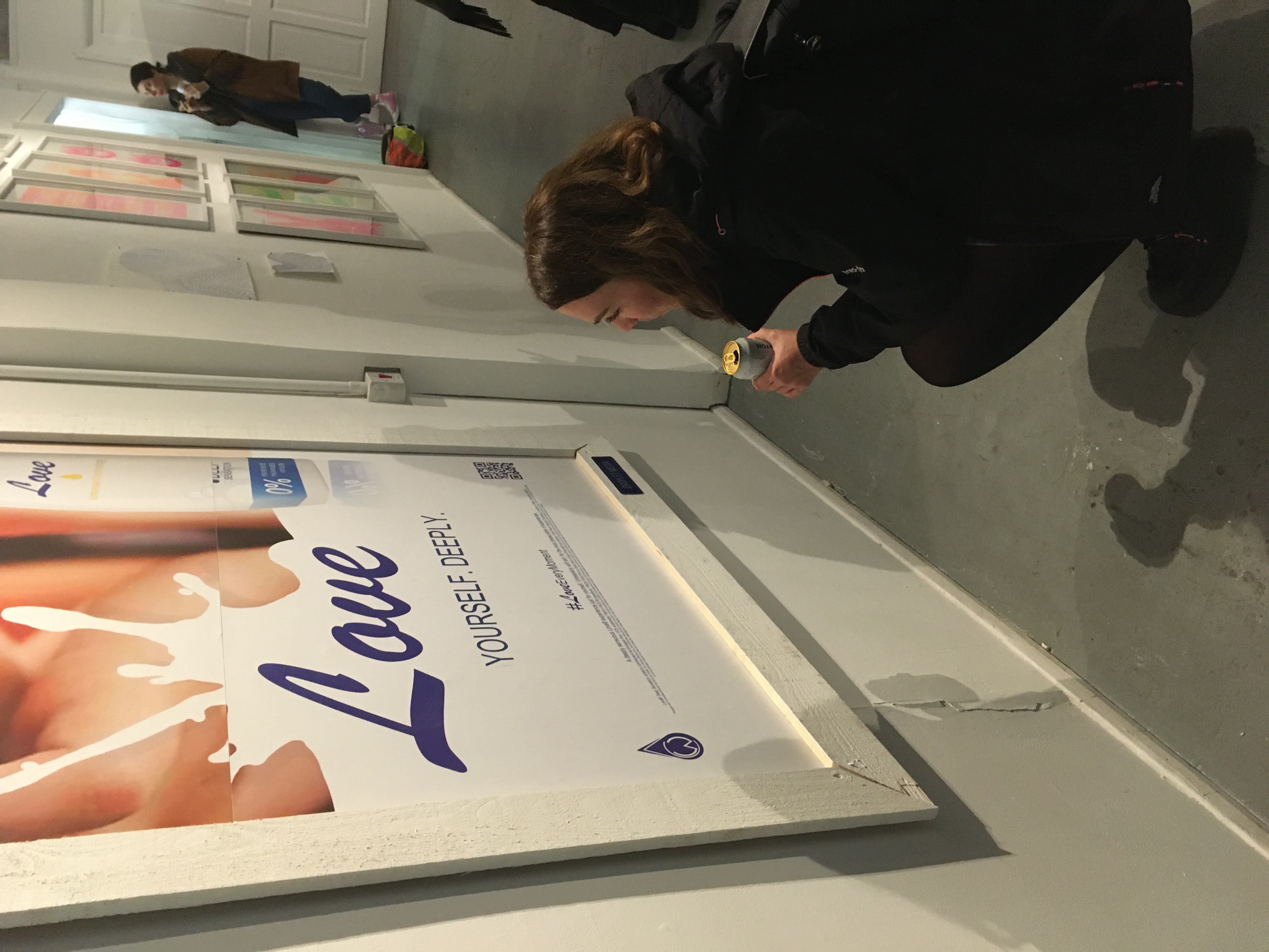 I made a 1.3m x 2.5m billboard that was meant to be seen as a large scale miniature, a macro version of the micro world. It was installed close to corner pipe work and electrical cables to give it a feeling of being placed outside and also anti-pigion spikes to increase the illusion that this was an actual billboard for a real product. There was a QR code in the lower right hand corner that took visitor to an advert for the product to further question ’Realness’